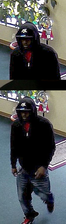 Attached are surveillance pictures of the suspect during the commission of the robbery.