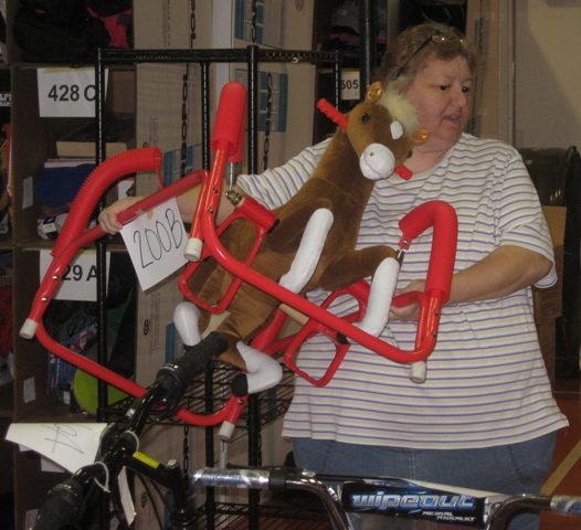 Alice Hamilton of Murfreesboro carries a small child’s hobby horse to the proper location on Saturday as final preparations for The Salvation Army Angle Tree continued. Hamilton’s Girl Scouts of Middle Tennessee troop 2430 and other volunteers assisted on Saturday. Friday marked the deadline for gifts to be delivered to The Salvation Army at the intersection of West Main Street and New Salem Highway, More than 1,400 children are registered in the program this year. Parents and guardians will be given the gifts on Tuesday, Dec. 20, between 7 a.m. and 4 p.m. For more information, call 615-895-7071.