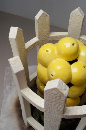 Phil Haralam uses the complex exterior and interior levels of human nature to represent the psychological underpinnings which present themselves in social form and structure. Therefore, he combines sculpted forms and graphic imagery into non-representative psychological portraits. He says, “Each piece evolves from a central form, upon which I layer additional visual information through painting, incised line, and applied decals. Through the interaction and juxtaposition of these visual elements I create layered compositions that emulate the seemingly random associations embedded within the human psyche.” Haralam holds a Bachelor of Fine Arts from Guilford College and a Masters of Fine Arts from Indiana University.