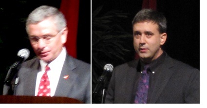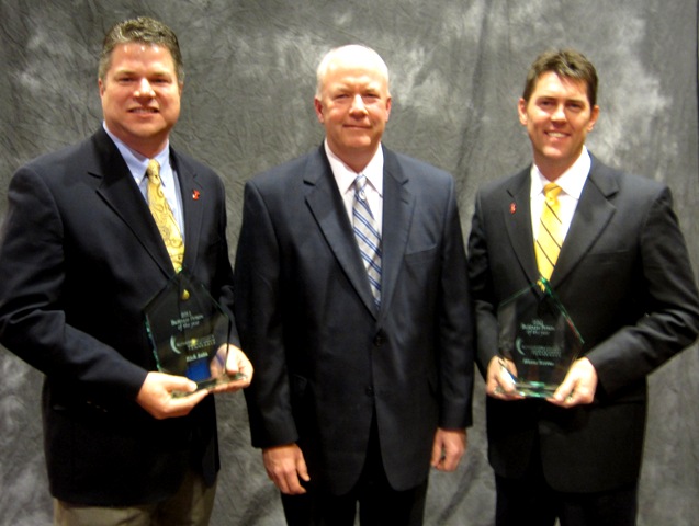 (L-R Photo) 2011 Chamber Chair Gordon Ferguson, who is president and CEO of Middle Tennessee Medical Center. 2012 Chair Peter Demos, who is president of Demos' Family Restaurant.