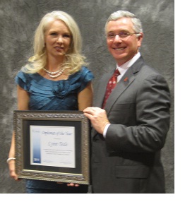 Lynn Tede with Bob Parks Realty was named the 2012 Diplomat of the Year. (left photo L-R) Diplomat Lynn Tede and Chamber Chairman Gordon Ferguson.