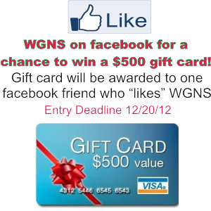 On December 20th, WGNS will randomly pick one lucky winner from our facebook "like" page to receive a $500 Visa Gift Card. To enter the contest, simply "like" WGNS on facebook and your name will be entered.